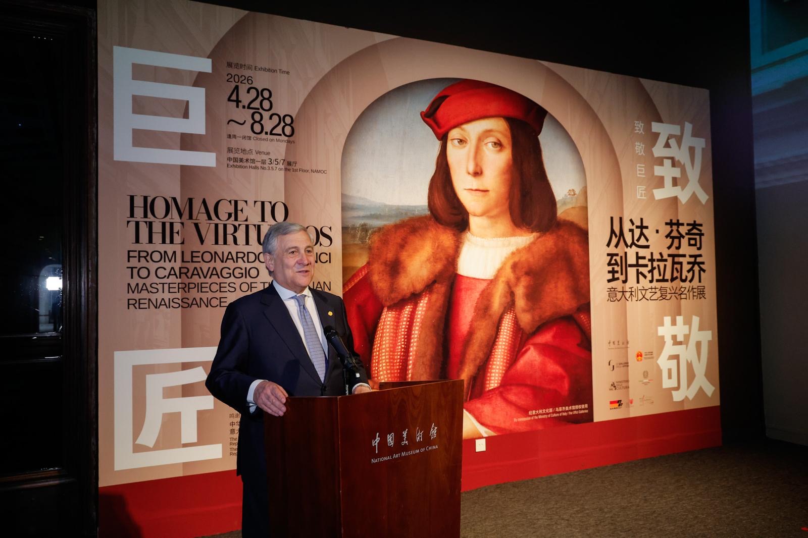 Dopo l’inaugurazione a Pechino, alla presenza del Ministro della cultura cinese Sun Yeli, della Mostra degli Uffizi “Omaggio ai Grandi Maestri, da Leonardo a Caravaggio”, con 36 opere del Rinascimento italiano, Tajani è poi proseguito per Shanghai, per una riunione fra il Sistema Italia e la comunità imprenditoriale italiana in Cina.