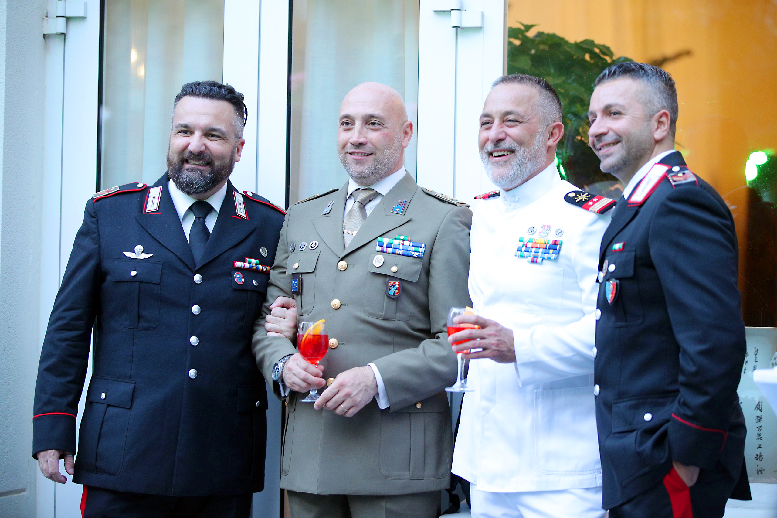正如大使所说,上周五是新冠疫情之后我们在意大利驻华使馆内迎来的第一个国庆日。本次庆祝活动的成功举办也要感谢以下赞助商们做出的贡献:意大利埃尼集团(ENI)、法拉利(Ferrari)、意大利IMOLA陶瓷、玛莎拉蒂(Maserati)、勒奥斯航空公司(NEOS)、华饮(SinoDrink)、韦士柏(Vespa)、意才(Yi Tsai)、布雷博(Brembo)、费列罗(Ferrero)、 芬坎蒂尼集团(Fincantieri)、 高利尔(Goglio)、那匹萨(La Pizza)、玛努利(Manuli)、柏札莱(Brazzale)、卡比詹尼(Carpigiani)、中意财险(Generali China Insurance)。驻京的国际外交界代表、中方政府机构、意大利商界人士、媒体记者和众多在京的意大利同胞参加了此次庆祝活动。