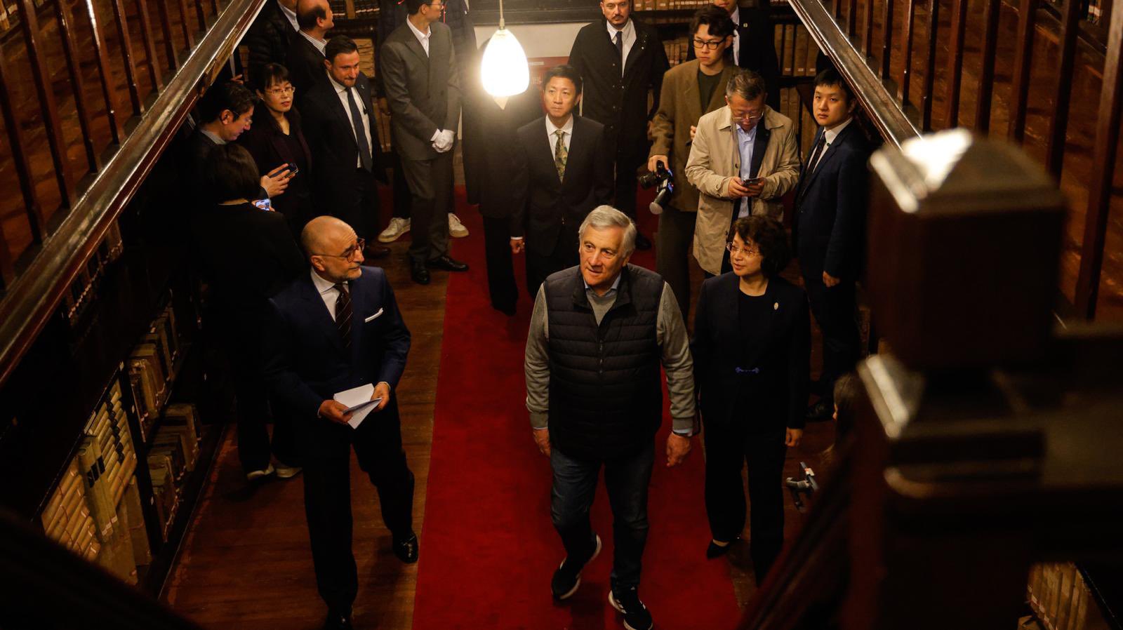 塔亚尼部长借此次参观回顾了这段历史,并查阅了一批珍贵文献,这些书籍由意大利耶稣会士所著,包括殷铎泽(Prospero Intorcetta)、卫匡国(Martino Martini)以及利玛窦(Matteo Ricci)本人。